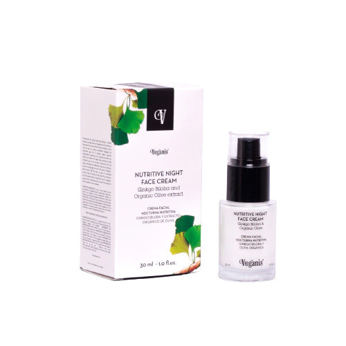 Crema Facial Nocturna Nutritiva (Ginkgo Biloba y Oliva Organico) de 30ml, ideal para nutrir y rejuvenecer tu piel durante la noche.